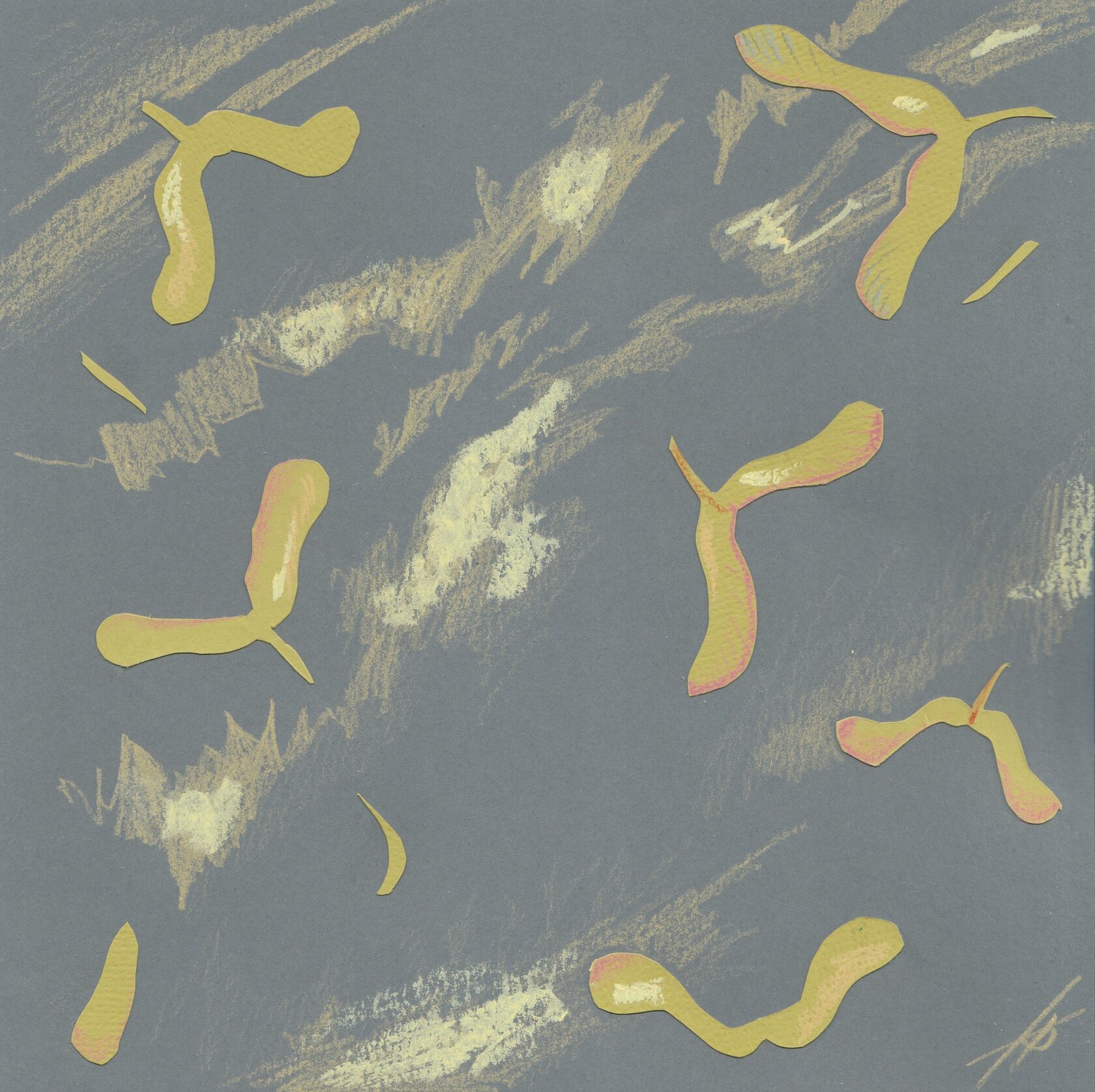 Коллаж. Бумага, масляная пастель, карандаши.
