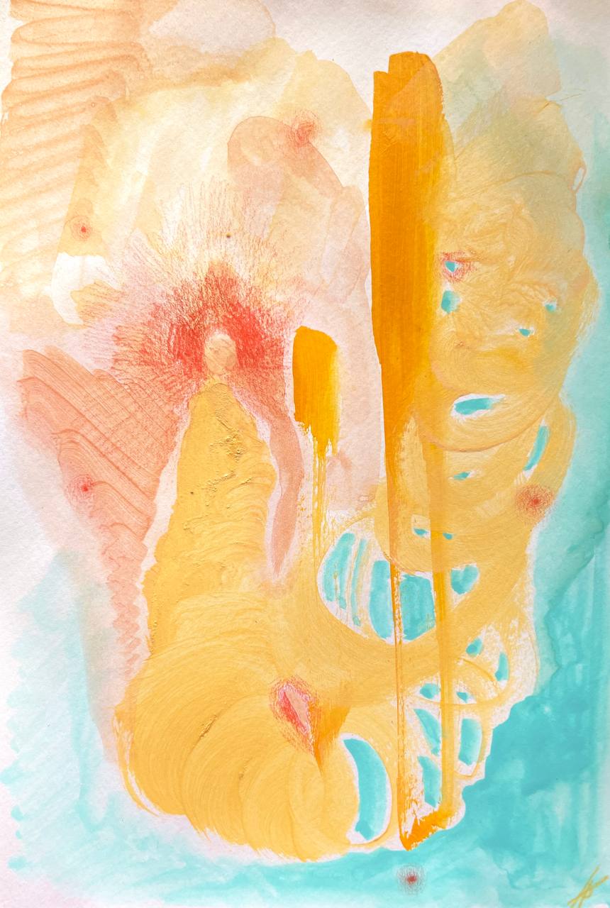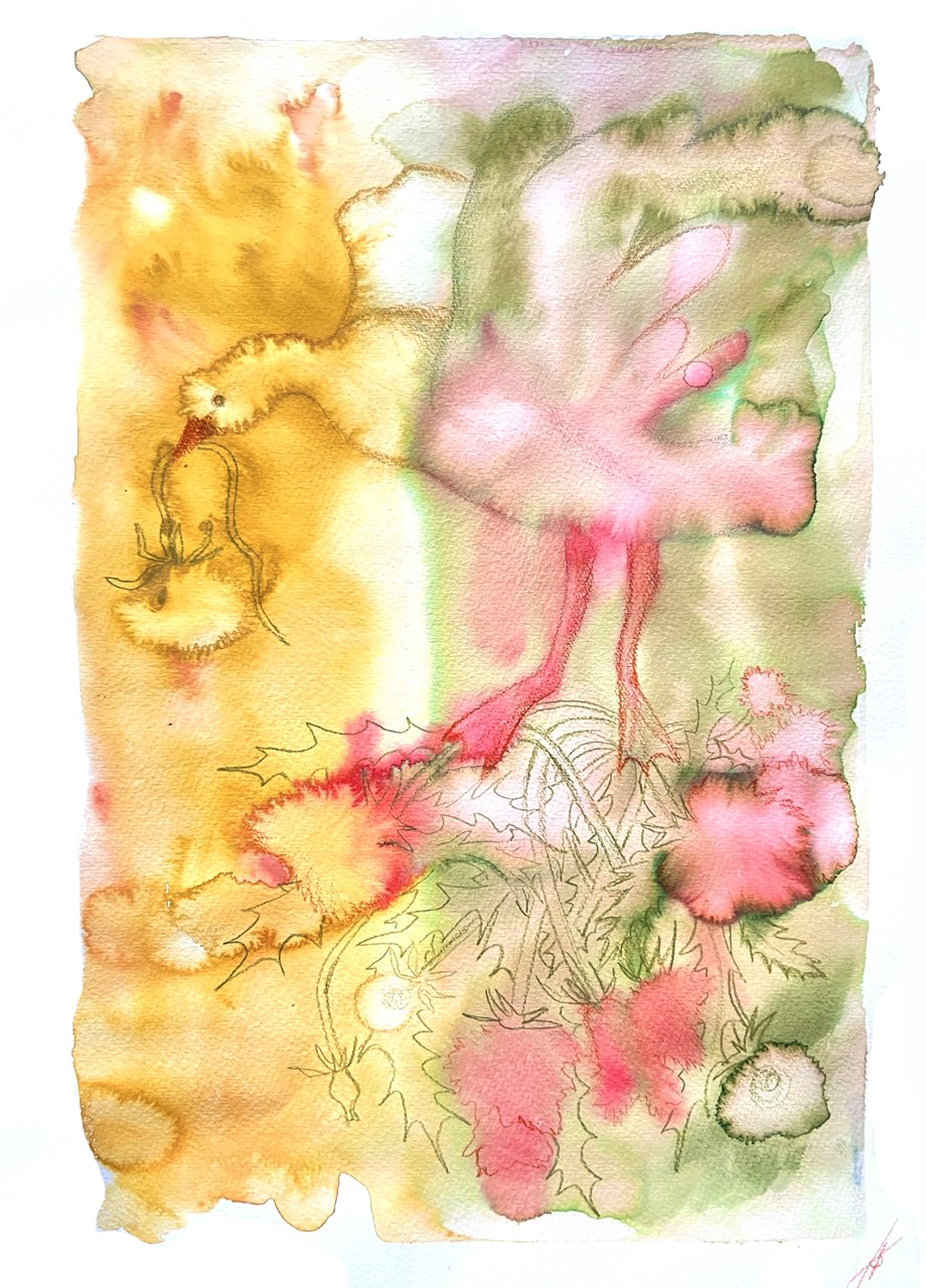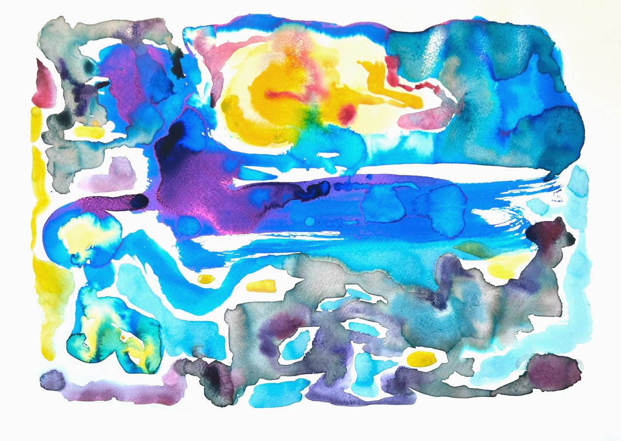 Бумага, акварель, распадающиеся чернила, цветные карандаши.