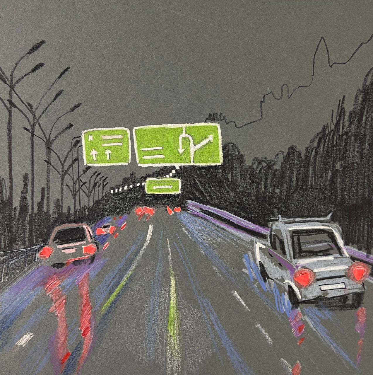Коллаж. Цветные карнадаши, бумага, лайнер.
